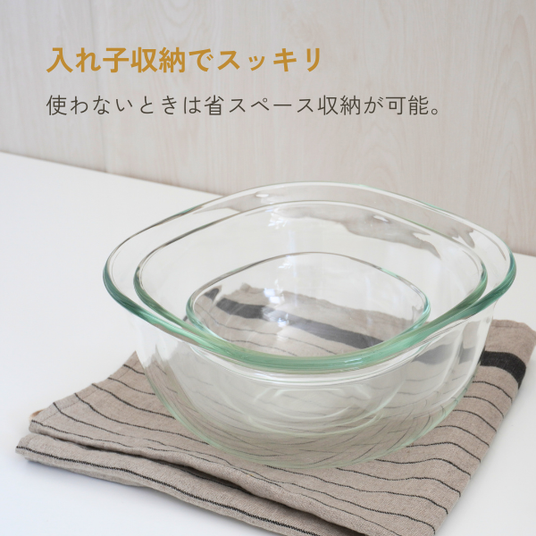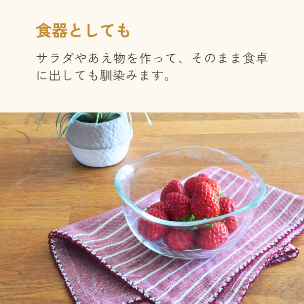 JANコード 4905284143312 素材 耐熱ガラス 寸法 W14×D14×H7cm 原産国 中国 表示容量 満水容量 カテゴリー クックウェア >> ボウル 取り扱いについての注意 耐熱ガラスは熱に強いガラスであり、衝撃に強い強化ガラスとは異なりますので、丁寧にお取扱いください。 詳細はこちら