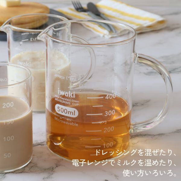 ドレッシングを混ぜたり、ミルクを温めたり使い方いろいろ。