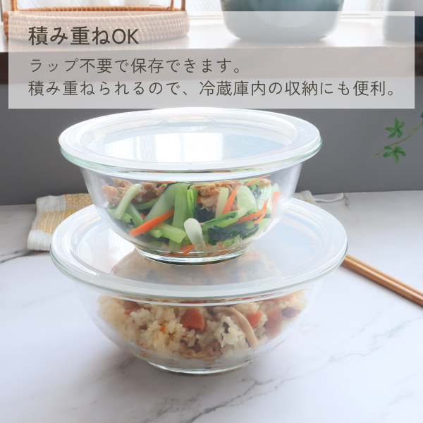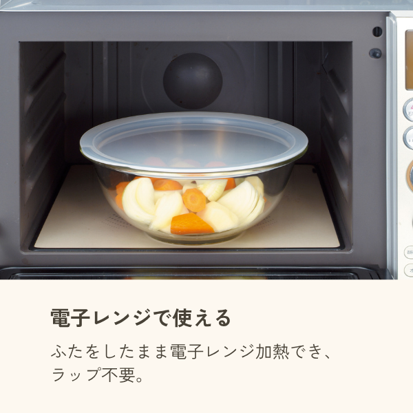 | 素材 | ボウル/耐熱ガラス ボウルレンジカバー/ポリプロピレン(耐熱温度:140℃) |