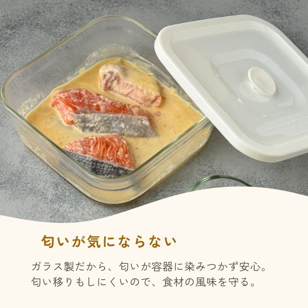 互換性のある密閉フタは、漬け肉やお漬物、汁気のあるものに便利!