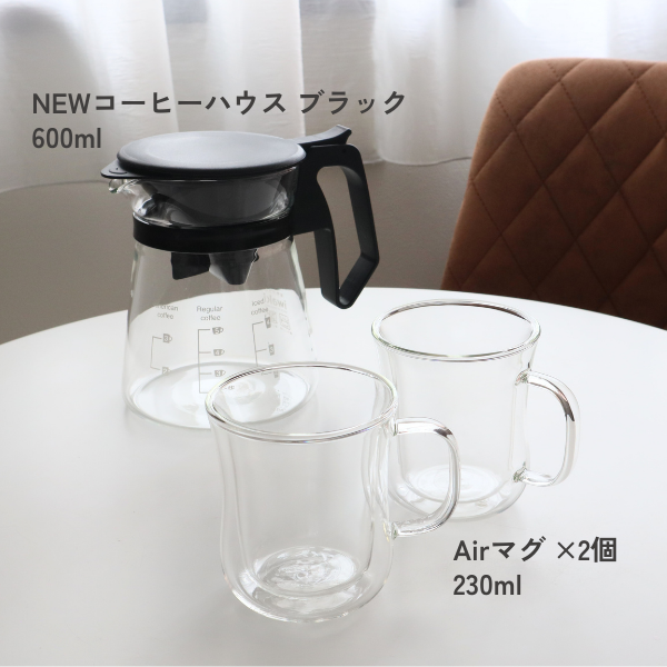 | 寸法 | 【NEWコーヒーハウス ブラック】 600ml(W17.5×D12×H16cm) 【Airマグ】 230ml(W11×D8.2×H9.5cm) |