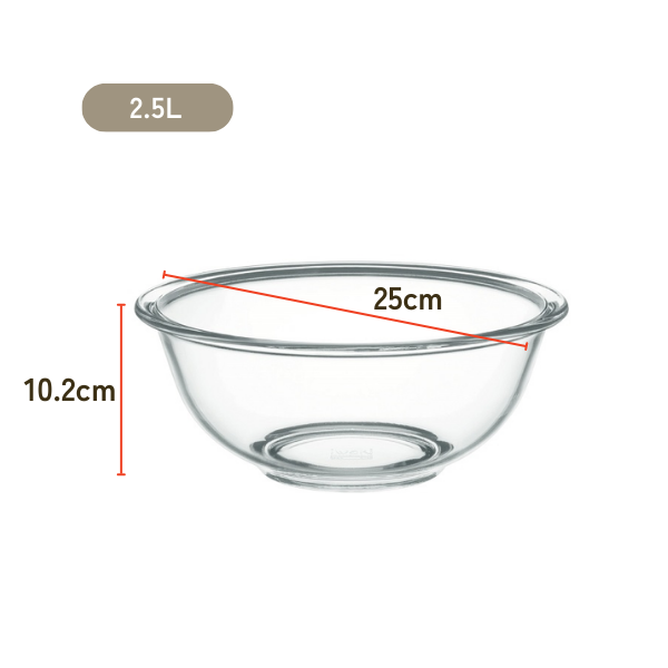 ボウル 250ml/φ11.6×H5.8cm ×1個 500ml/φ14.4×H6.8cm ×1個 900ml/φ18×H8cm ×1個 1.5L/φ21.3×H9cm ×1個 2.5L/φ25×H10.2cm ×1個 メジャーカップ 200ml/φ7.4×H10cm ×1個 500ml/φ9.1×H15.3cm ×1個 |