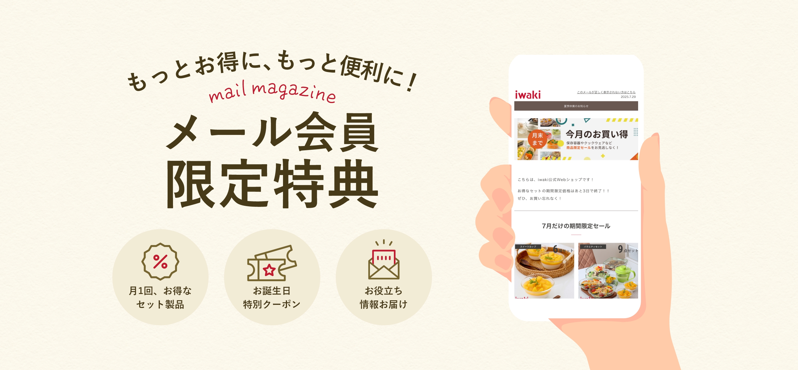 人気の保存容器セットや便利なキッチングッズを特別価格でご提供。メール会員限定でご案内します!