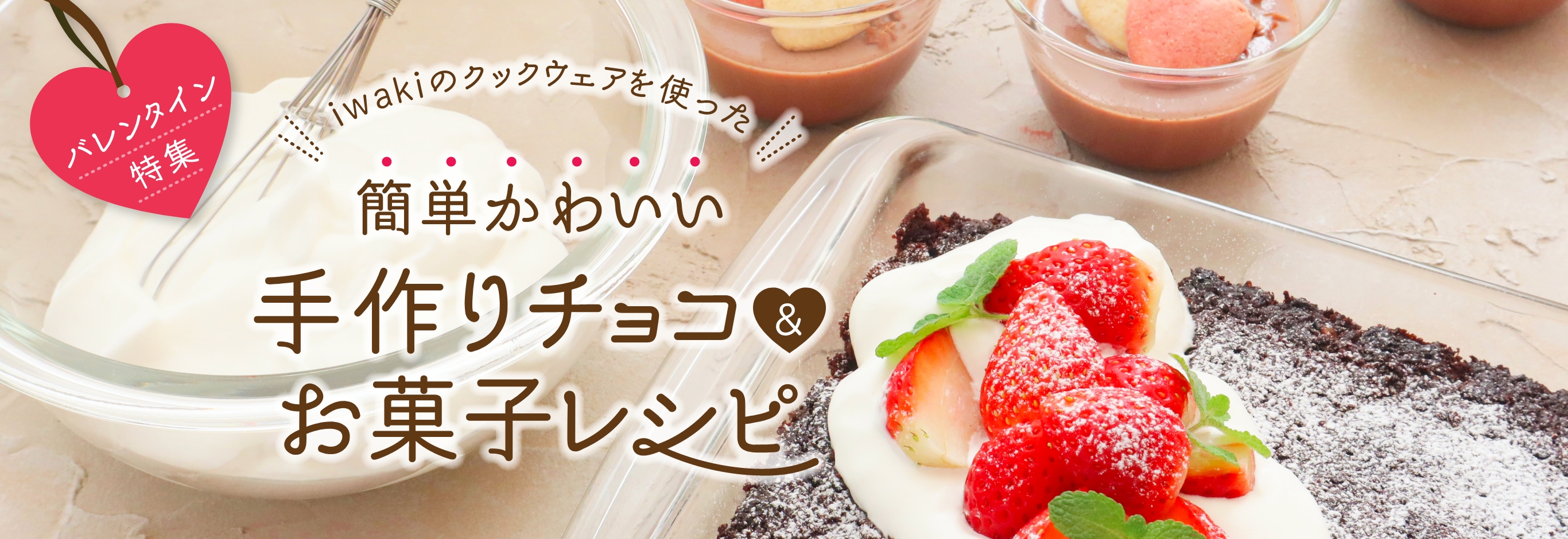 今年のバレンタインはどんなチョコやお菓子を作るか決めましたか?家族や友達、恋人のために作りたい、とっておきのバレンタインレシピをiwakiが集めました!iwakiの耐熱ガラスで、簡単でかわいいお菓子作りをお楽しみください。