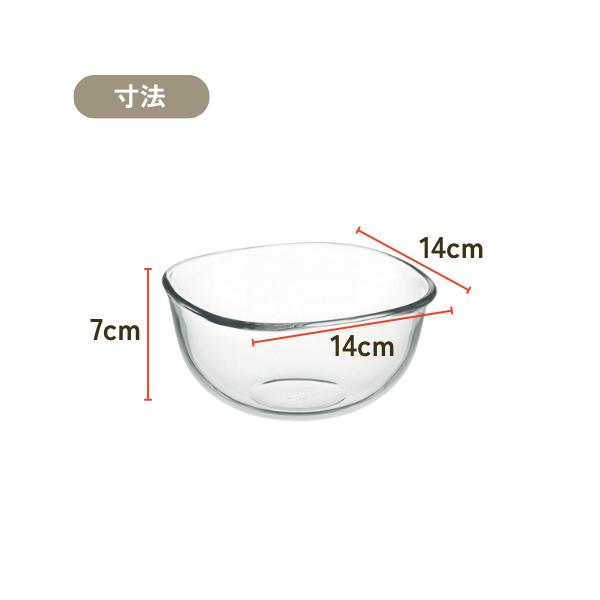 JANコード 4905284143312 素材 耐熱ガラス 寸法 W14×D14×H7cm 原産国 中国 表示容量 満水容量 カテゴリー クックウェア >> ボウル 取り扱いについての注意 耐熱ガラスは熱に強いガラスであり、衝撃に強い強化ガラスとは異なりますので、丁寧にお取扱いください。 詳細はこちら