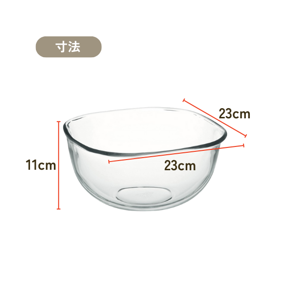 JANコード 4905284143374 素材 耐熱ガラス 寸法 W23×D23×H11cm 原産国 中国 表示容量 満水容量 カテゴリー クックウェア >> ボウル 取り扱いについての注意 耐熱ガラスは熱に強いガラスであり、衝撃に強い強化ガラスとは異なりますので、丁寧にお取扱いください。 詳細はこちら