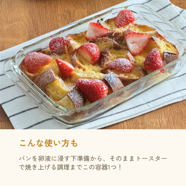 トースター調理に使いやすい耐熱皿。1人分のメインおかずやスイーツにも活用できます。