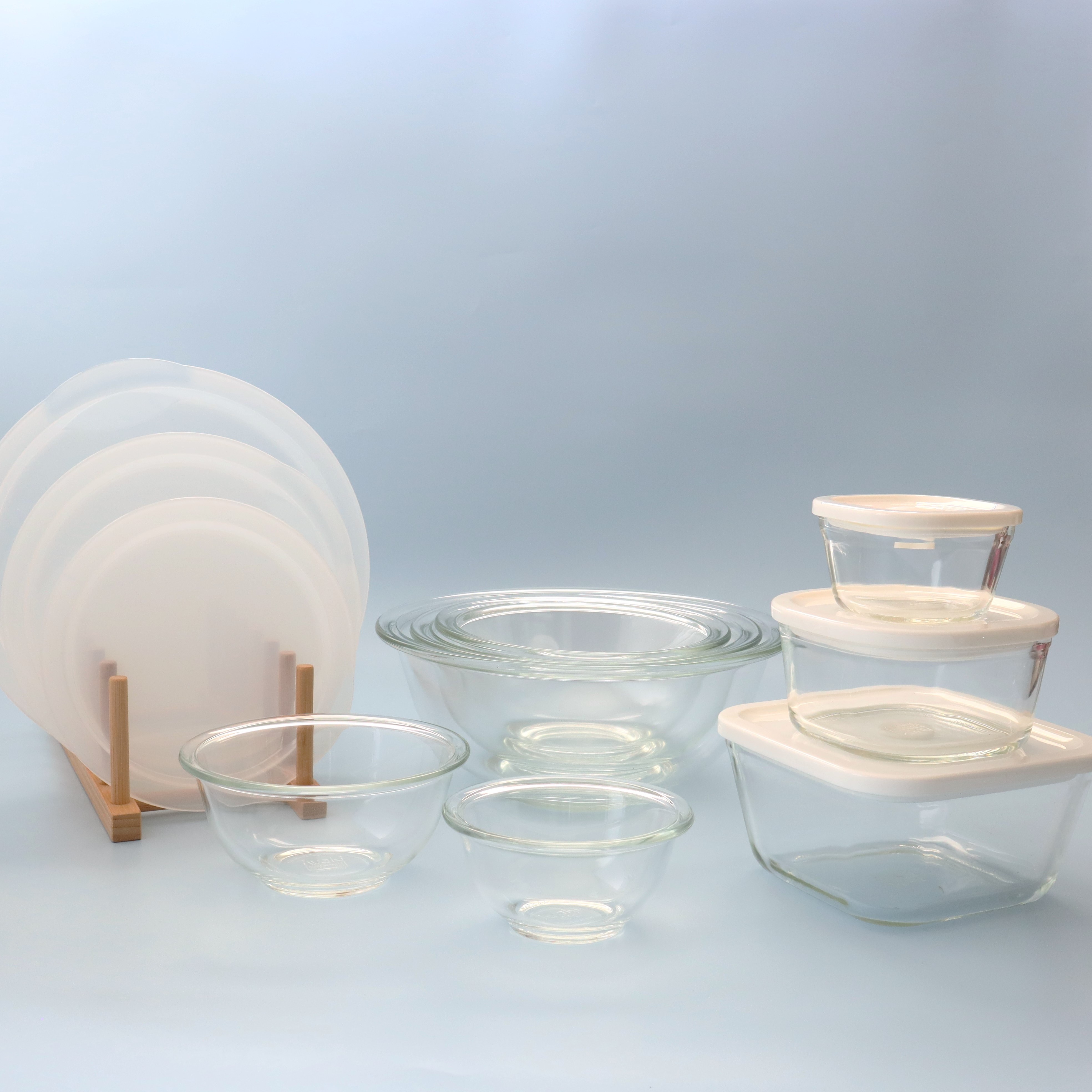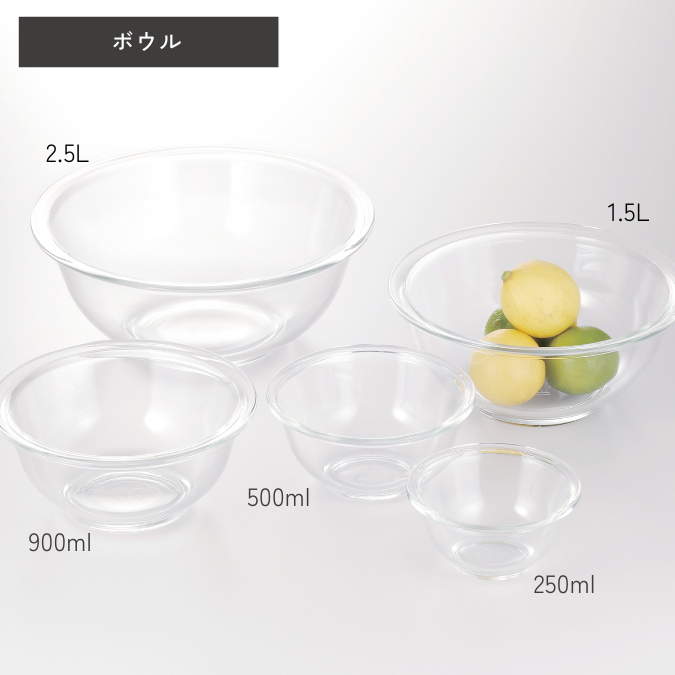 【ボウル】 250ml/φ11.6×H5.8cm ×1個 500ml/φ14.4×H6.8cm ×1個 900ml/φ18×H8cm ×1個 1.5L/φ21.3×H9cm ×1個 2.5L/φ25×H10.2cm ×1個 【ボウルレンジカバー】 ボウル900ml用/W18.4×D18cm ×1個 ボウル1.5L用/W21.8×D21.5cm ×1個 ボウル2.5L用/W25.5×D25cm ×1個 【密閉パック&レンジ】 110ml/W9×D9×H5.5cm ×1個 350ml/W13×D13×H6.5cm ×1個 700ml/W15.5×D15.5×H8cm ×1個 |