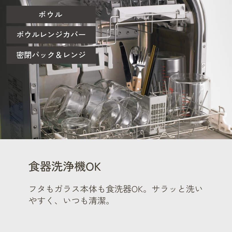 | 原産国 | ボウル、密閉パック&レンジ/中国 ボウルレンジカバー/日本 |