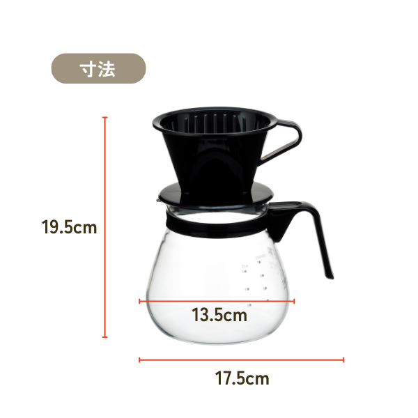 | 素材 | 本体/耐熱ガラス フタ・ハンドル・ドリッパー/ポリプロピレン(耐熱温度:140℃) |